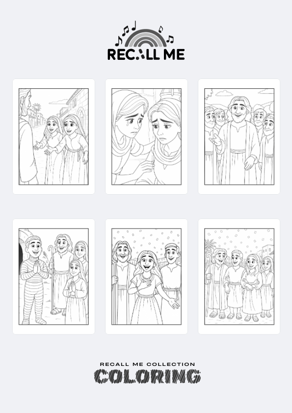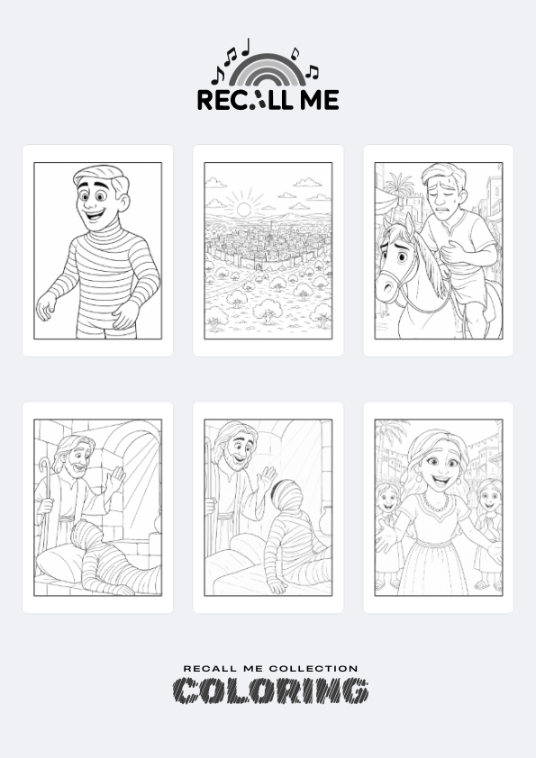 These pages feature Lazarus’ sisters, Mary and Martha, Jesus Himself, and the powerful moment when Lazarus walks out of the tomb.
