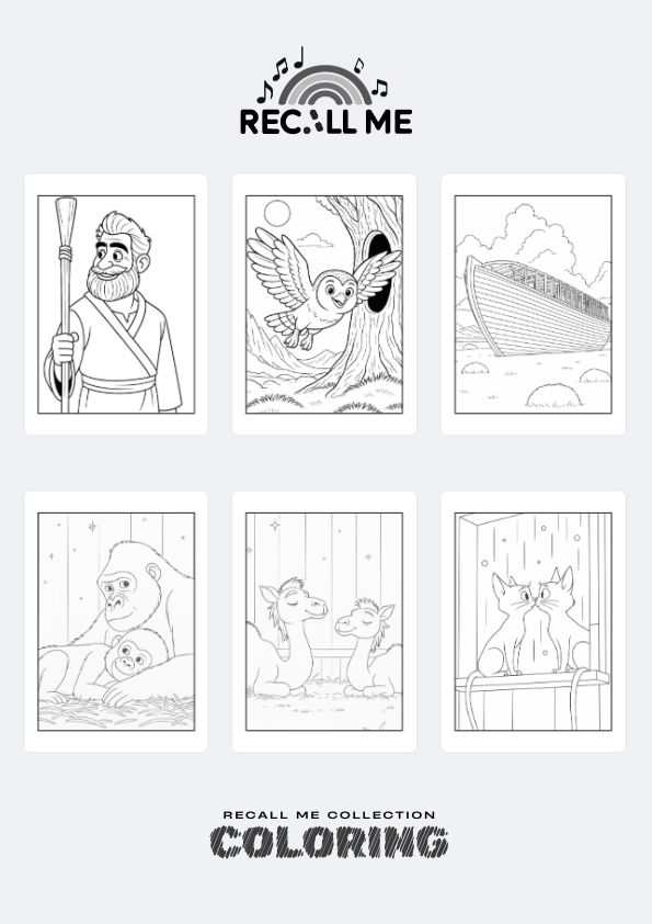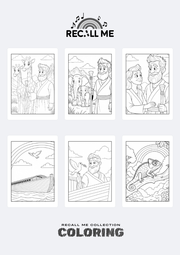 Digital PDF file, with 18 pages from the adventure of Noah’s Ark to print and color anytime you wish.